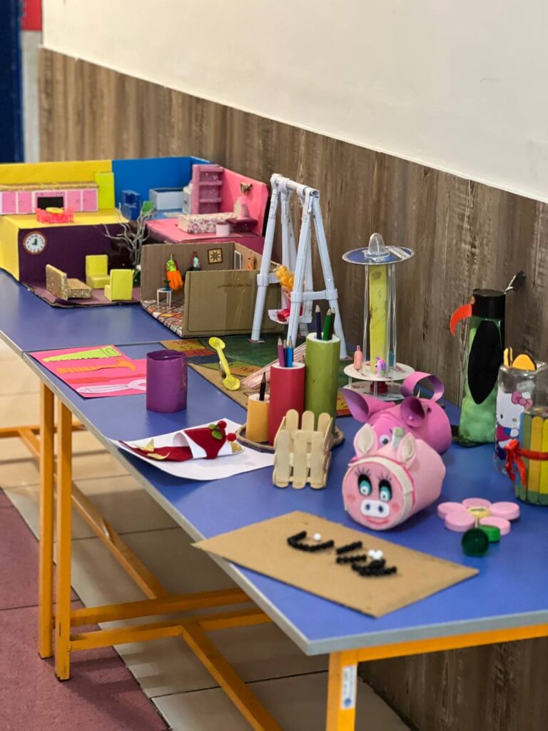 تهیهی کاردستیهای خلاقانه و زیبا با وسایل بازیافتی توسط دختران گل دبستان دخترانهی ملل