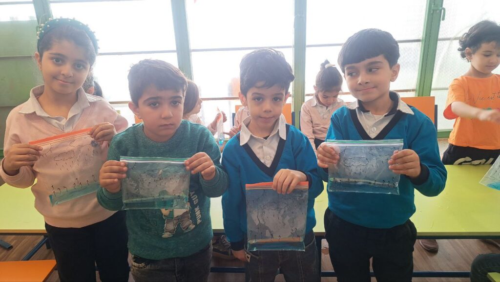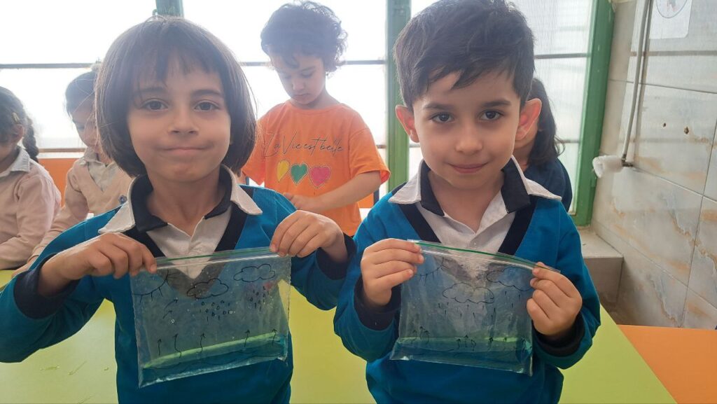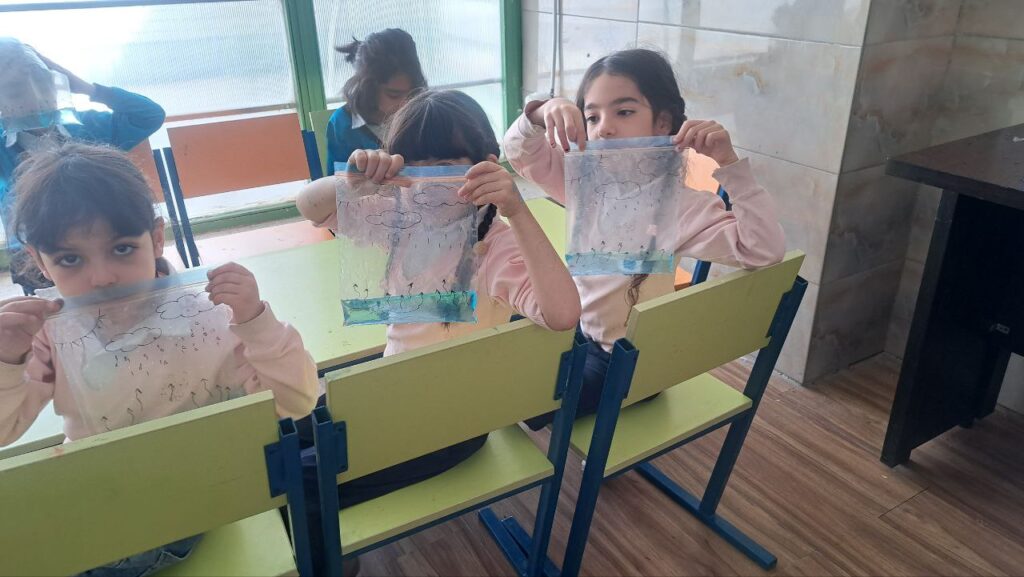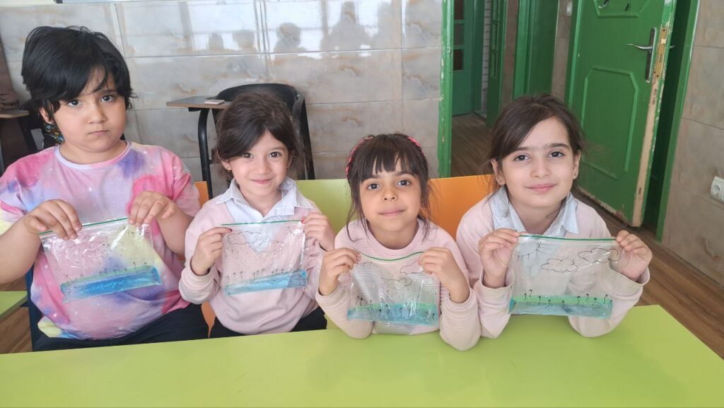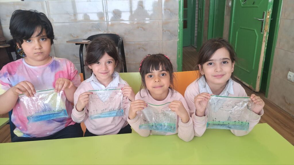 تهیه‌ی کاردستی آشنایی با چرخه‌ی آب در کودکستان ملل